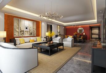 中國(guó)傳統(tǒng)居室非常講究空間的層次感。這種傳統(tǒng)的審美觀念在“新中式”裝飾風(fēng)格中,又得到了全新的闡釋:依據(jù)住宅使用人數(shù)和私密程度的不同,需要做出分隔的功能性空間,則采用“埡口”或簡(jiǎn)約化的“博古架” 來(lái)區(qū)分;在需要隔絕視線的地方,則使用中式的屏風(fēng)或窗欞,通過(guò)這種新的分隔方式,單元式住宅就展現(xiàn)出中式家居的層次之美。