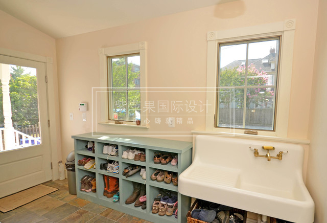 可以設計個專門的鞋柜,把平時的各類鞋子都可以在這個空間清洗、護理,還有要設計個烘鞋子的插座。