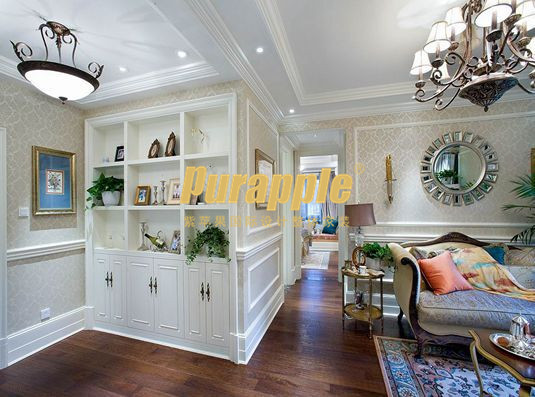 四、 玄關(guān)墻面的裝修設(shè)計——玄關(guān)的墻面往往與人的視距很近,常只作為背景烘托。設(shè)計師選出一塊主墻面重點加以刻畫,或以水彩,或以木質(zhì)壁飾,或刷淺色乳膠漆, 再設(shè)計一個別致的大理石擺臺,下面以雅致的鐵花為托腳。這進而我們應(yīng)該把握;重在點綴達意,切忌堆砌重復,且色彩不宜過多。